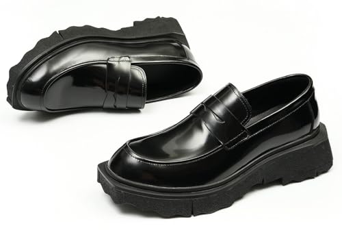 Santimon Mens Loafers Slip On Formal Dress Patent Leathe Penny Loafers Fashion Prom Wedding Business Casual Mocasines Thick Sole Walking Shoes for Men 6