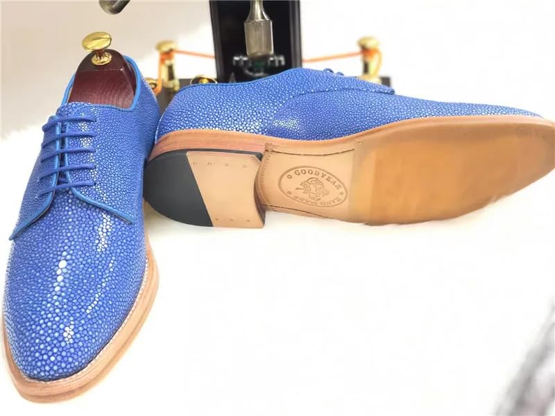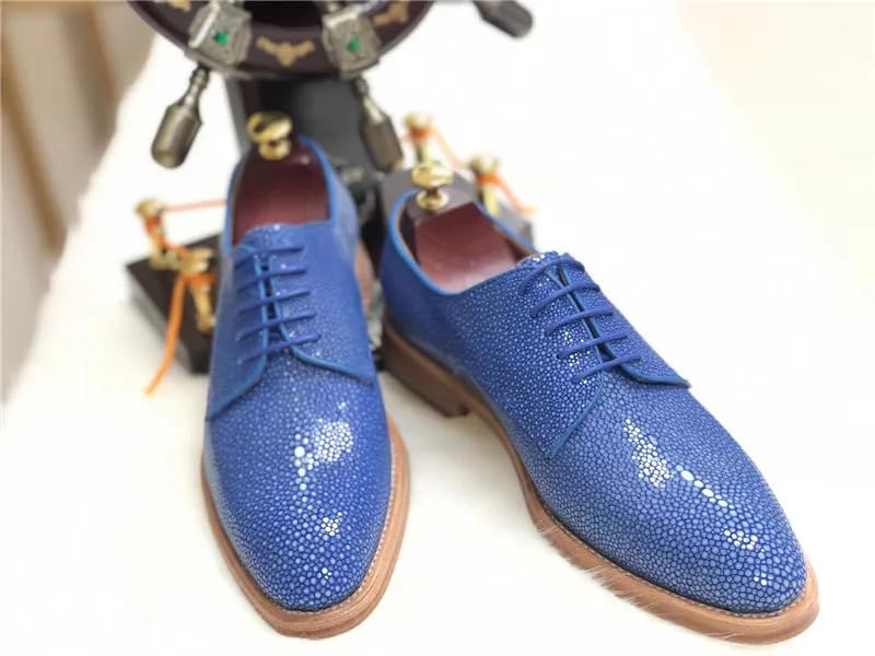 Authentic Real Stingray Skin Fashion Red Blue Men's Dress Shoes Genuine Exotic Leather High-end Male Lace-up Party Dress Oxfords 6